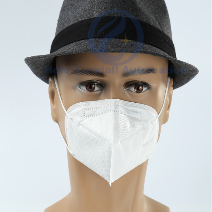 "Leadall" high speed folding type dust mask making machine supports fully automatic material feeding (3-6 layers), logo printing, inside nose clip welding, blank mask welding, ear loop welding, folding, cutting, waste material discharging until a completely folding type dust mask is finished, it adopts servo material feeding and high precision positioning system which works closely with every each process, to meet with the market demands, the mould can be customized accordingly, it’s an idea machine for manufacturing of different types of folding masks.